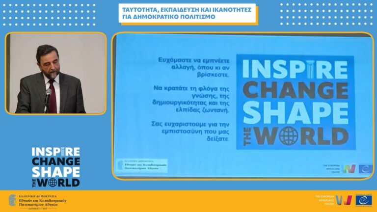Χαιρετισμούς απηύθυναν ο Κοσμήτορας της Φιλοσοφικής Σχολής, Καθηγητής Δημήτριος Δρόσος, ο Διευθυντής του ΠΜΣ, Καθηγητής Μάριος Κουκουνάρας Λιάγκης, καθώς και ο εκπρόσωπος του European Wergeland Centre, Άγγελος Βαλλιανάτος, οι οποίοι υπογράμμισαν τη σημασία της δημοκρατικής παιδείας, του διαλόγου και της καλλιέργειας των αξιών του δημοκρατικού πολιτισμού στην εκπαίδευση.