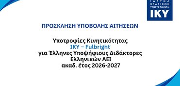 Το Ίδρυμα Κρατικών Υποτροφιών και το Ίδρυμα Fulbright Greece υλοποιούν ένα πρόγραμμα χορήγησης υποτροφιών κινητικότητας στις Η.Π.Α., το οποίο απευθύνεται σε Έλληνες υποψηφίους διδάκτορες ελληνικών Α.Ε.Ι., κατ’ εφαρμογή τού από 10/05/2022 μνημονίου συνεργασίας και των κανονιστικών διατάξεων του προγράμματος με τίτλο «Υποτροφίες του Ιδρύματος Κρατικών Υποτροφιών (Ι.Κ.Υ.) σε συνεργασία με …
