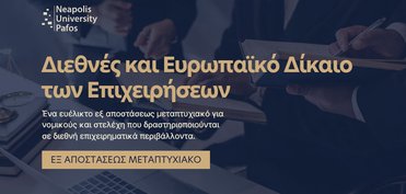 Σε ένα περιβάλλον όπου οι επιχειρήσεις κινούνται σε ένα διαρκώς μεταβαλλόμενο διεθνές πλαίσιο, η ανάγκη για νομικούς με εξειδικευμένη γνώση στο Διεθνές και το Ευρωπαϊκό Δίκαιο των Επιχειρήσεων αποκτά ολοένα και μεγαλύτερη σημασία. Το Εξ Αποστάσεως Μεταπτυχιακό (LLM) στο Διεθνές και Ευρωπαϊκό Δίκαιο των Επιχειρήσεων του Πανεπιστημίου Νεάπολις Πάφου έρχεται …