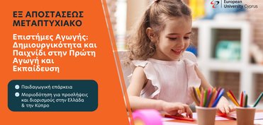 Σε μια εποχή όπου η καινοτομία και η προσαρμοστικότητα αποτελούν βασικά εφόδια στην εκπαίδευση, το Εξ αποστάσεως Μεταπτυχιακό Πρόγραμμα «Επιστήμες της Αγωγής - Δημιουργικότητα και Παιχνίδι στην Πρώτη Αγωγή …