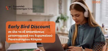 Early bird έκπτωση σε όλα τα εξ αποστάσεως προγράμματα του Ευρωπαϊκού Πανεπιστημίου Κύπρου